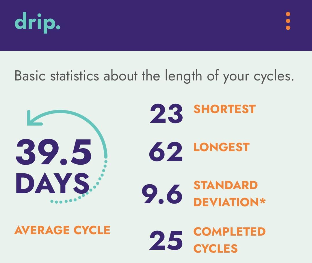 Decidi que ia acompanhar minha menstruação (usando o Drip.app, que recomendo muito!), e deixar o tempo fazer seu trabalho. Minha hipófise em algum momento ia aprender a produzir LH. Depois de alguns anos acompanhando, meus status estão assim: